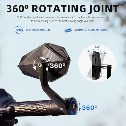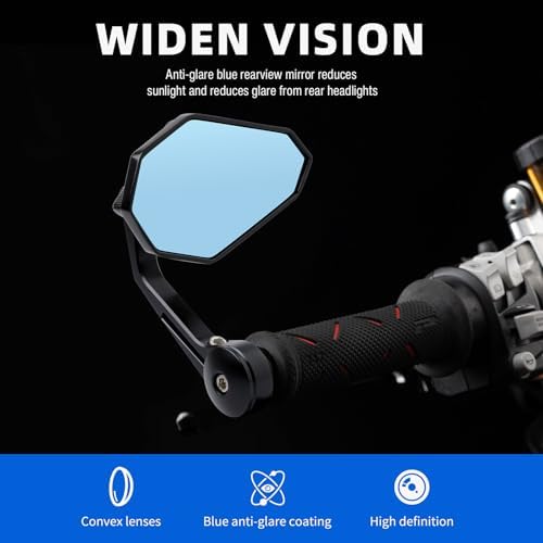 Sponsored Ad - Motorcycle Bar End Mirrors Black CNC Bar End Mirrors for Motorcycles Compatible with Honda Kawasaki Suzuki Scooter and More (Blue Glass Lens)