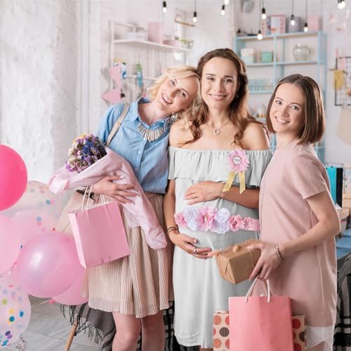 Baby Shower Belly Sash - Pink Bow Mom to be Sach Satin Ribbon Belly Band for Wedding Pregnant Baby Shower Party Photoshoot (PINK)