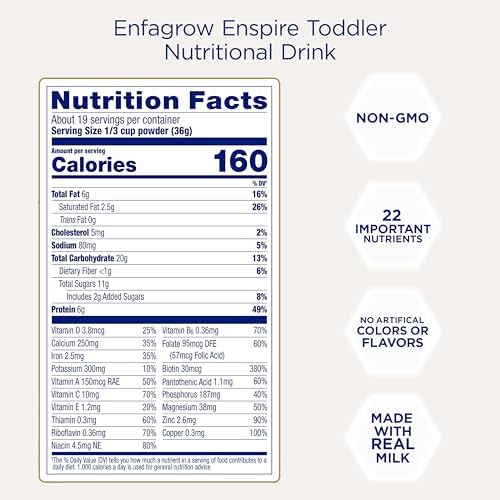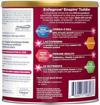 Enspire Toddler, Nutritional Drink, Immune-Supporting Lactoferrin and Brain-Supporting DHA, Natural Milk Flavor, 24 Oz Can (Pack of 4)