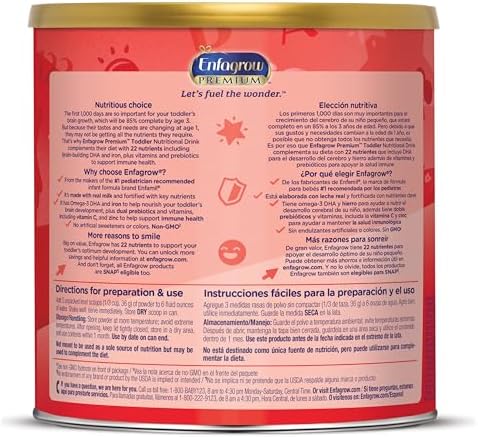 PREMIUM Toddler Nutritional Drink, Made with Real Milk, Brain-Building Omega-3 DHA, Nutrients and Prebiotics for Growth & Immune Support, Non-GMO, Toddler Milk Powder, 24 Oz Can