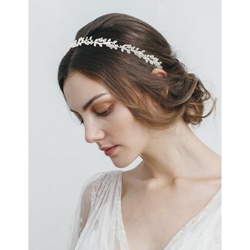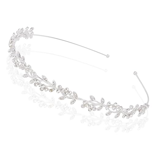 Wedding Headbands for Women Girls Bride Headband Bridal Headpieces Crystal Hair Band Silver Tiara Wedding Gifts Hair Accessories Elegant Fairy Rhinestone Handmade Leaves Flowers
