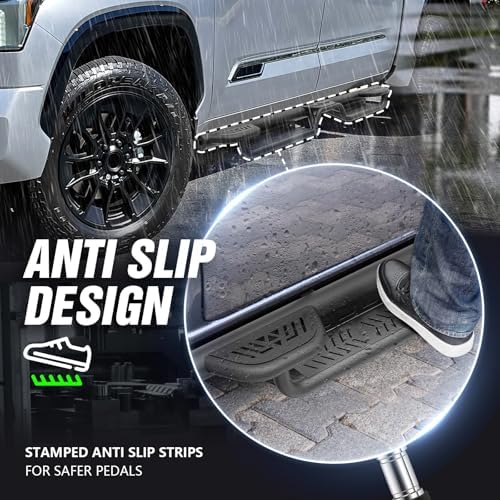Sponsored Ad - Three Raised Steps Running Boards CrewMax Cab Side Steps Compatible with 2022 2023 2024 2025 Toyota Tundra CrewMax Cab, Bolt-on Heavy-Duty Carbon Steel Nerf Bar Side Rails Rock Sliders