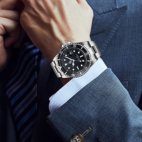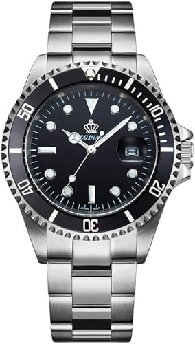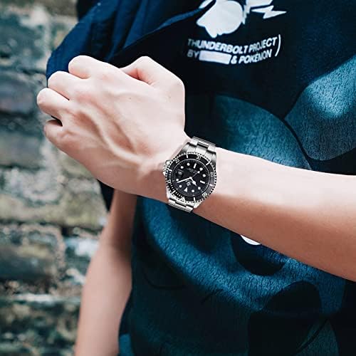 Mens Luxury Watches Rotatable Bezel Sapphire Glass Luminous Hand Quartz Silver Tone Stainless Steel Watch