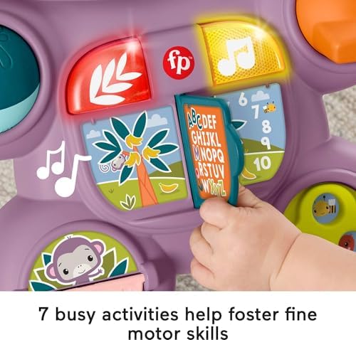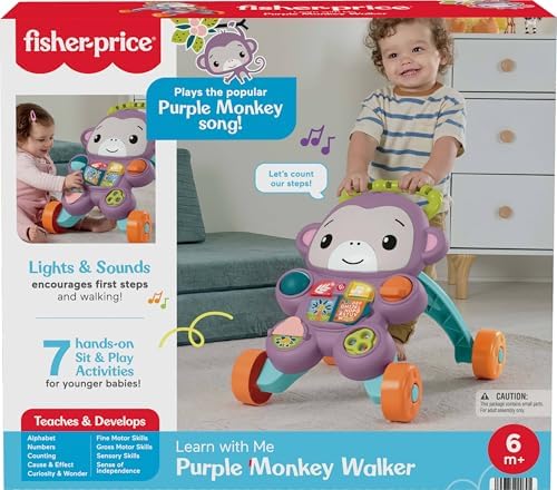 Fisher-Price Baby Walker Learn with Me Purple Monkey Learning Toy with Music Lights & Activities for Infants & Toddlers Ages 6+ Months