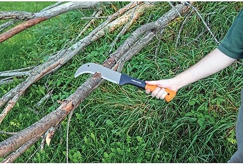 Fiskars 9" Brush Axe with Safety Sheath - Fixed Handle -Curved Blade Branch Chopping Axe - Yard and Garden Tools - Black/Orange