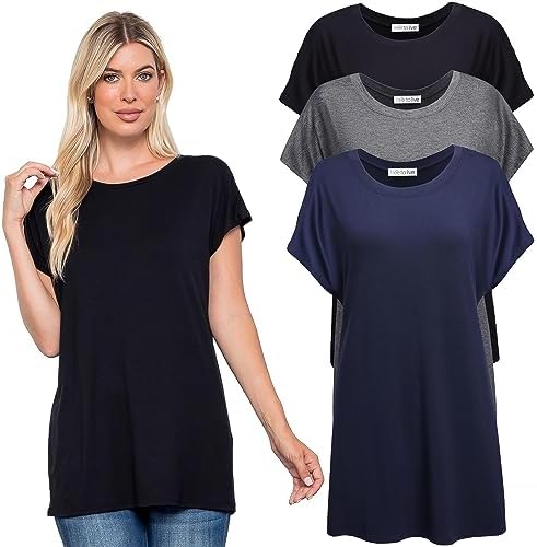 Sponsored Ad - 3 Pack Extra Long Tshirts for Women Tunic Tops to Wear with Leggings Short Sleeve Tee Workout T Shirts Loose Fit