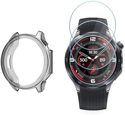 Watch Screen Protector for OnePlus Watch 3 Smartwatch, [3-Packs] Tempered Glass Film & Protective Hard PC Case, Anti-Scratch, Bubble-Free, HD Clear, Shockproof Protection (Transparent Black)