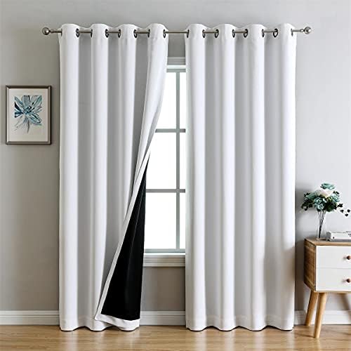 G2000 100% Blackout Curtains for Bedroom Living Room 84 Inches Long White Room Darkening Window Grommet Thermal Lined Insulated Light Blocking Noise Reducing 2 Panels Set