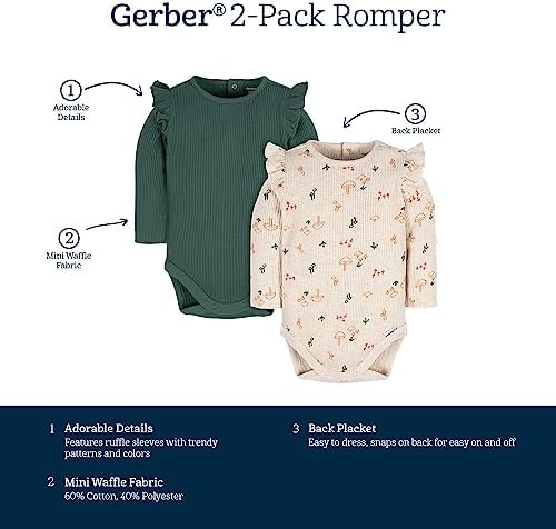 baby-girls 2-pack Long Ruffle Sleeve Onesies