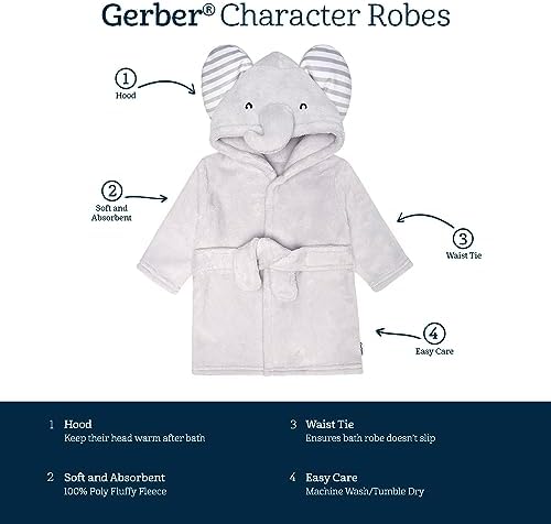 Unisex Baby Plushy Soft Hooded Animal Character Bathrobe