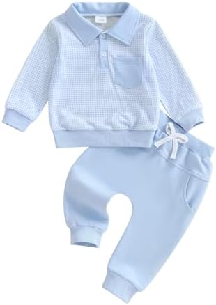 Sponsored Ad - Toddler Baby Boy Fall Clothes Plaid Long Sleeve Sweatshirt Tops + Casual Pants Sets 2pcs Infant Boy Winter Clothes
