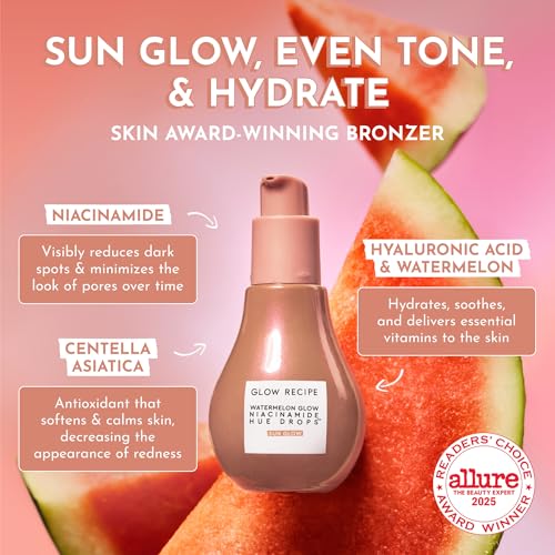 Hue Drops Tinted Face Serum - Bronzing Drops to Brighten & Hydrate - Skincare Makeup Primer & Liquid Highlighter to Blur Pores for a Radiant, Even Skin Tone - Sunglow (40ml)