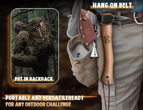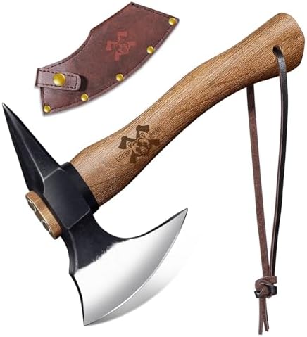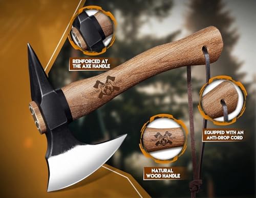 Grumpy Bear Camping Axe 11 Inches with High Carbon Steel, Forged Blade, Natural Wood Handle, Safety Lanyard – for Chopping, Wood Splitting, Hiking, and Outdoor Activities