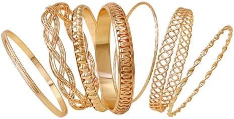 "Basic" Gold 7 Piece Mixed Bangle Bracelet