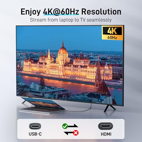 USB C to HDMI Cable for Home Office 6.6FT (4K@60Hz), High-Speed Type C to HDMI 2.0 Braided Cord, Thunderbolt 4/3 Compatible with MacBook, iPhone 16/15 Pro/Max, iMac, iPad Pro, Galaxy S24, Surface