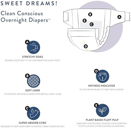 Sponsored Ad - Clean Conscious Overnight Diapers for Sensitive Skin, Hypoallergenic Fragrance-Free Baby Diapers, Cozy Cloud and Star Signs Design, Club Box, Size 4 (22–37 lbs), 48 Count