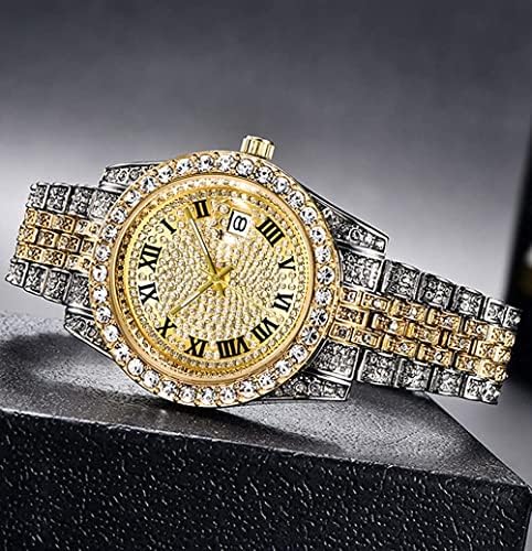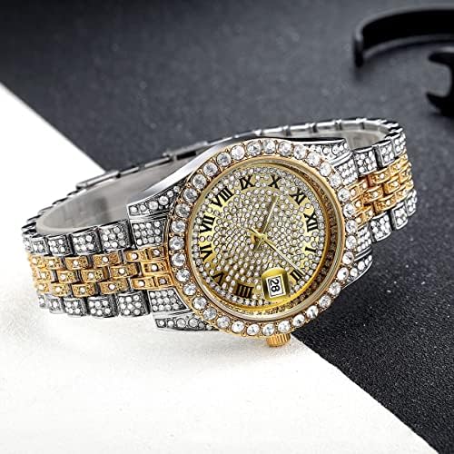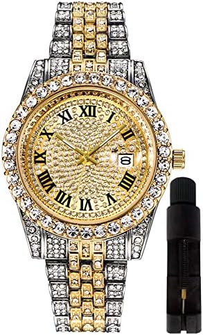 Hip Hop Watches for Men Iced-Out Bling Diamond Luxury Quartz Watches with Date