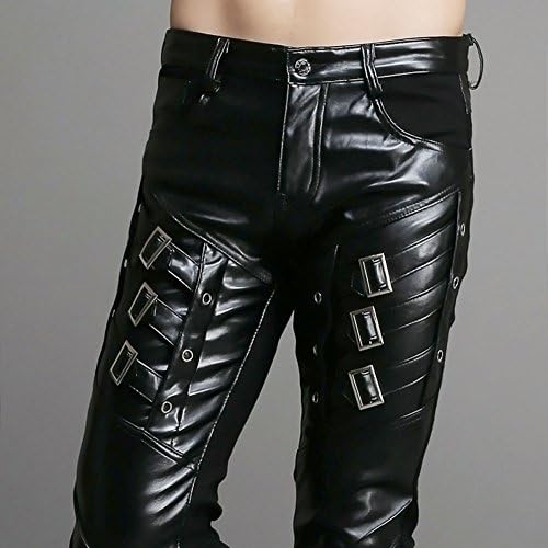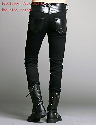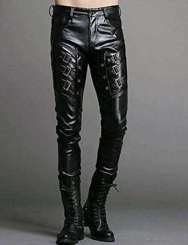 Men`s Black Slim Fit Soft PU Faux Leather Biker Pants