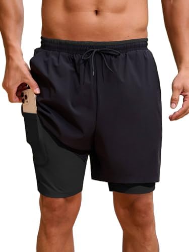 NCERUN 2 in 1 Mens Swim Trunks 7 Inch Swim Shorts Elastic Waist Bathing Suit with Compression Liner