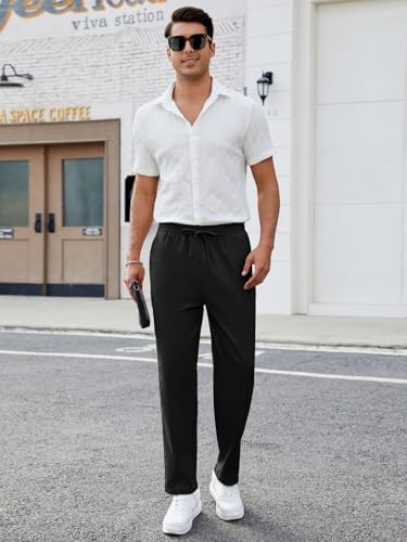 Mens Casual Pants Elastic Waist Drawstring Chinos Pants Tapered Twill Trousers with Pockets