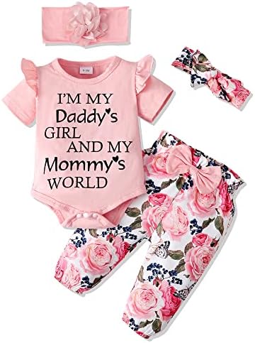 Newborn Infant Baby Girl Clothes Ruffle Romper Toddler Girl Floral Cotton Pant Sets Girls Clothing Outfit