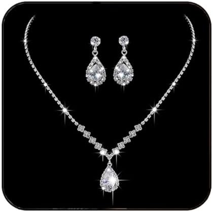 JAKAWIN Bride Silver Bridal Necklace Earrings Set Crystal Wedding Jewelry Set Rhinestone Choker Necklace for Women (Set of 3) (NK144-3)