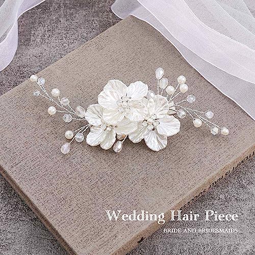 Sponsored Ad - Jakawin Bride Flower Wedding Hair Piece Silver Pearl Hair Clip Rhinestone Crystal Headpiece Leaf Bridal Hair Accessories for Women FJ01 (1 Silver)