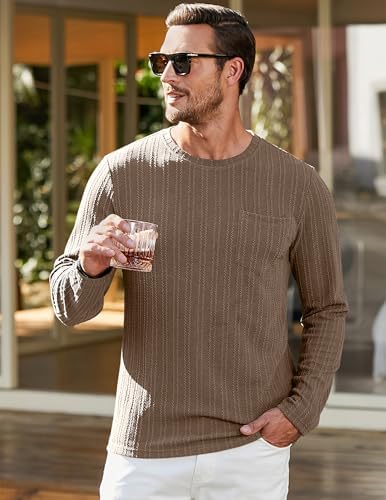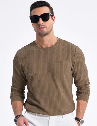 Sponsored Ad - Men's Long Sleeve Shirts Casual Crewneck Pullover T-Shirt Stretch Textured Knit Tee with Pocket