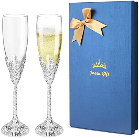 Sponsored Ad - Champagne Flutes - Set of 2 Champagne Glasses,Toasting Flute Pair,Crystal Glasses&Metal Base, Wedding Anniversary, Party Birthday Banquets,Gifts for Bride and Groom 6 oz-Silver