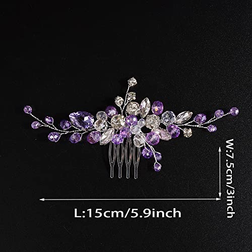 JWICOS Crystal Bride Wedding Hair Comb Rhinestone Bridal Hair Clip Glitter Wedding Hair Accessories for Women and Girls (Purple)