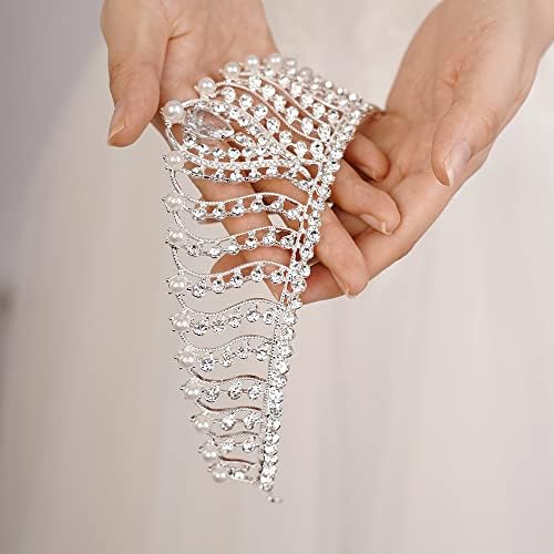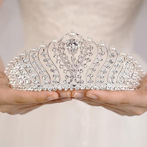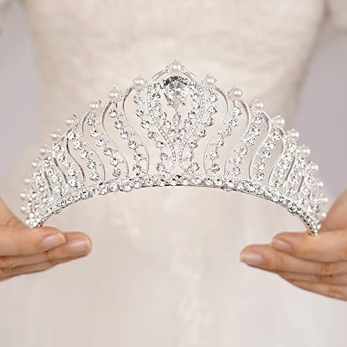 JWICOS Silver Pearl Crown for Women Queen Crown and Tiara for Women Crystal Rhinestone Princess Tiaras Crowns Wedding Hair Accessories for Bride Birthday Party Prom