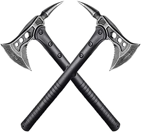 JXE JXO Camping Axe, Throwing Tactical Tomahawk with Spike, Survival Hatchet with Sheath, Nylon Fiber Handle for Outdoor Survival Hiking Camping (2 Pack)