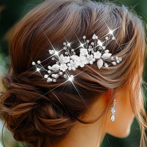 Flower Bride Wedding Hair Comb Silver Pearl Bridal Headpiece Crystal Hair Accessories for Women