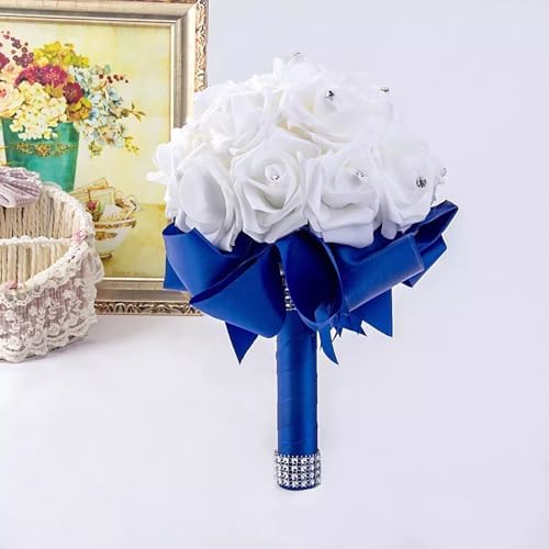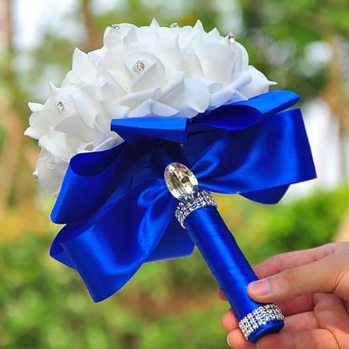 Sponsored Ad - Wedding Bouquets - Crystal Diamond Silk Roses, Bride & Bridesmaid Hand Roses for Churches & Parties (Blue)