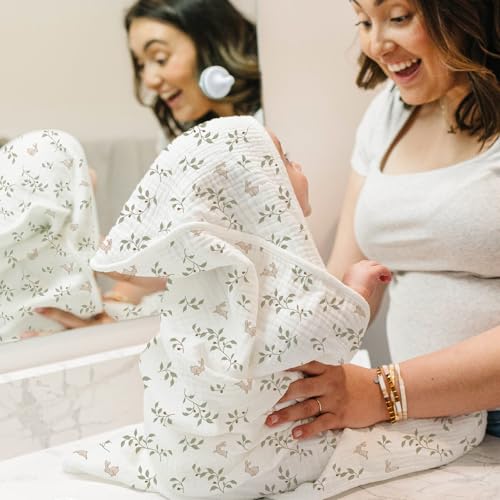 Konssy 2-Pack Muslin Hooded Baby Towels, 100% Cotton, Ultra-Soft & Absorbent Baby Bath Towels with Hood for Newborn & Infant (Fog Green, Sprout, 32" x 32")