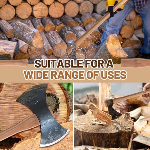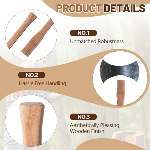 Lasnten 4 Pcs 36 Inches Double Bit Axe Handle Replacement Hickory Wood Axe Maul Handle, Complete Set with Wooden and Iron Wedges for Double Bit Hatchet