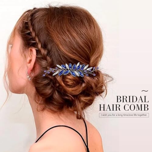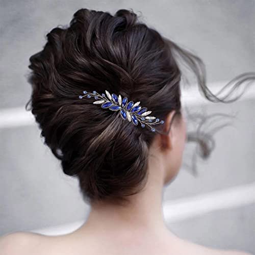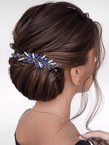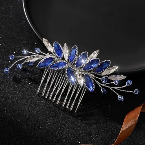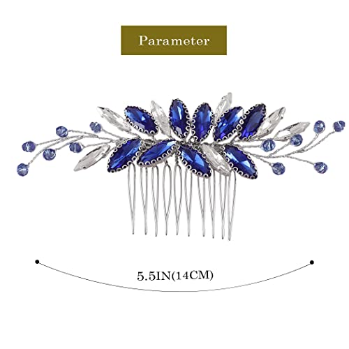 Latious Crystal Bride Wedding Hair Comb Blue Rhinestones Bridal Hair Clip Sparkly Hair Piece Royal Sapphire Hair Accessories for Women and Girls