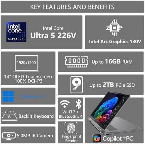 Sponsored Ad - Yoga 7 2-in-1 AI Laptop | 14" WUXGA OLED Touch | Intel Core Ultra 5 226V (Up to 40 Tops) | 16GB RAM 512GB SSD | Copilot+ PC for Creator Business Professional Win11 w/DLCA Accessory