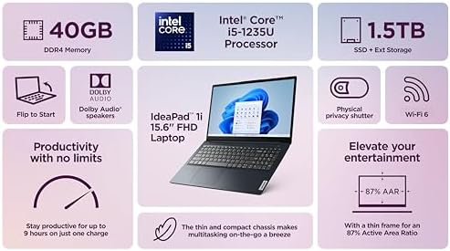 Sponsored Ad - IdeaPad Laptop Computer 2025, 15.6" FHD Touchscreen, 10-Core Intel i5, Intel Iris Xe Graphics, 40GB RAM, 1.5TB Storage (1TB SSD + 500GB Ext), MarxsolAccessory, Win 11 Pro, Lifetime Offi