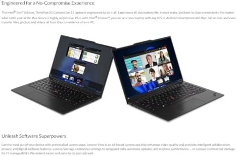 Gen 12 ThinkPad X1 Carbon Laptop with Intel Ultra 7 155U Processor, 14" WUXGA 100% sRGB Non-Touch Display, 32GB 6400MHz RAM, 512GB Gen4 Performance SSD, FHD+ IR+ RGB Camera, and Windows 11 Pro