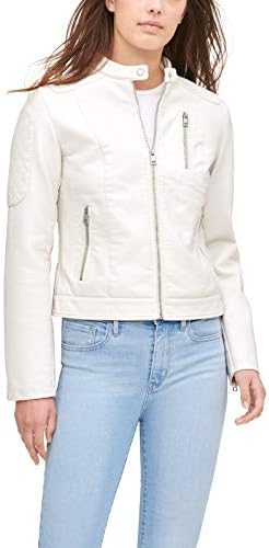 womens Faux Leather Motocross Racer Jacket (Standard and Plus)