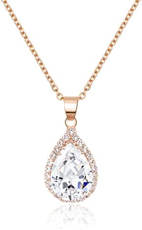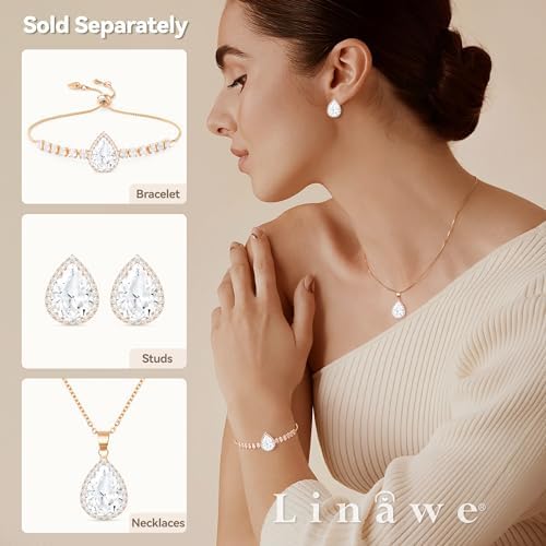 Linawe Crystal Chain Necklace for Women Trendy, Imitation Diamond Pendant, Statement Cubic Zirconia Boho Jewelry Set, 14K Gold/Rose Gold/Silver Birthstone Necklace