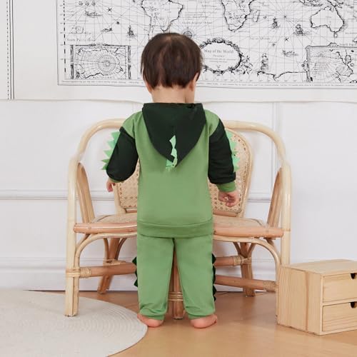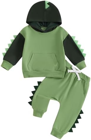 Infant Baby Boy Hooded Dinosaur Fall Outfit Contrast Sweatshirt Pant Set Toddler Dinosaur Clothes 6 12 18 Months 2T