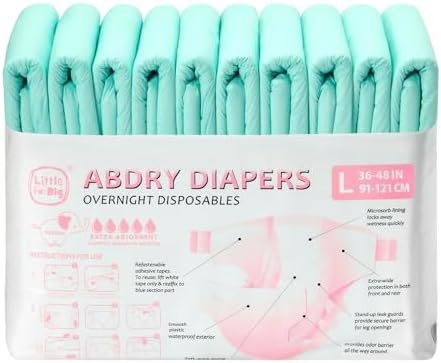 Adjustable Tapes Adult Diaper 10 Pieces - ABDry Ultra Absorbent Diapers 6500 mL Green (Large 36"-48")