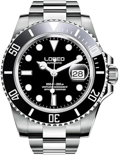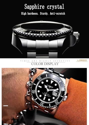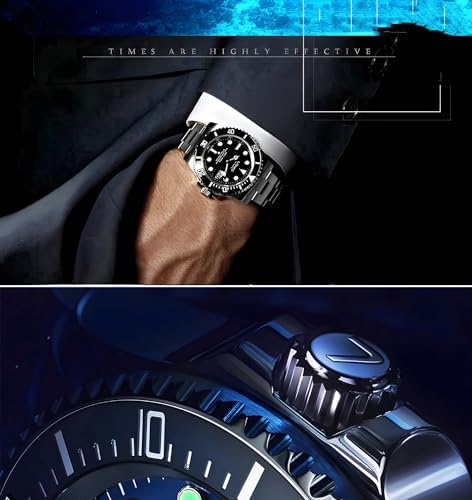 Sponsored Ad - Mens Silver Stainless Steel Sapphire Glass Black Rotating Bezel Men's Automatic Watch