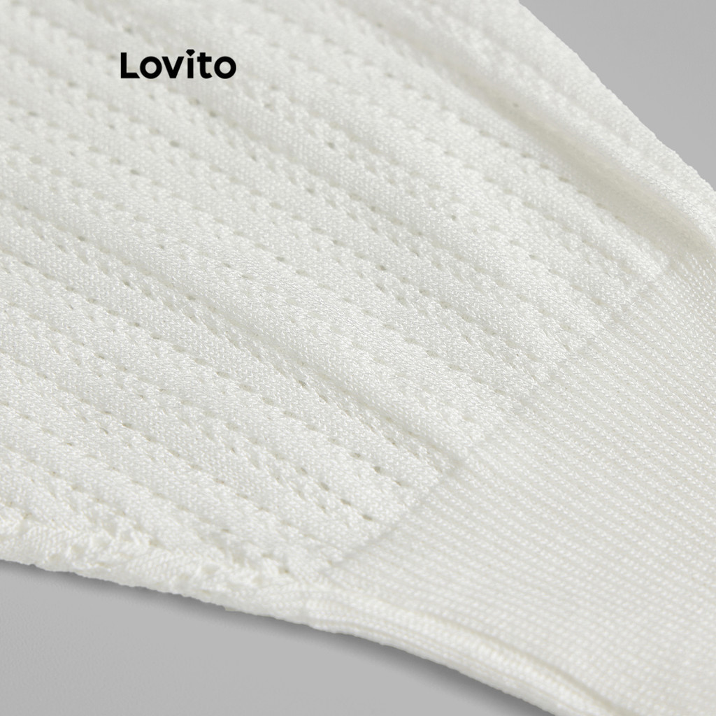 Lovito Casual Plain Cardigans for Women L64AD102 (White/Black)