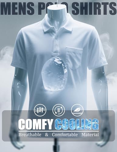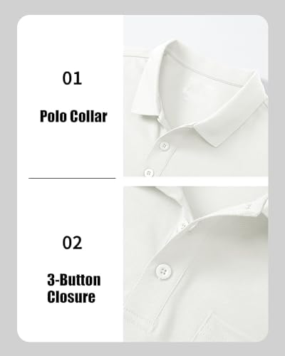 Mens Polo Shirts Short Sleeve Cotton Pique Golf Shirts with Pocket Casual Performance Moisture Wicking Polos White XL