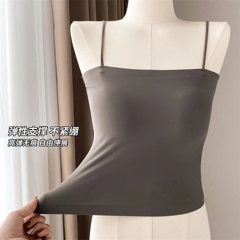 Maniyun Summer Ice Silk Sling Camisole With Padding Women Singlet Top Seamless Suspender