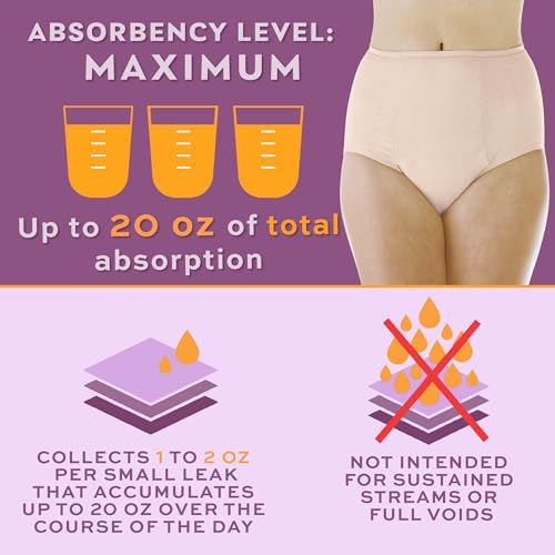 Women's Maximum Absorbency Incontinence Panties for Bladder Control - Washable, Reusable, Leak Proof Underwear for Women 600 ml - (Pack of 3) (Beige) (3X) (Fits Hip: 49-51")