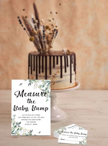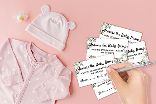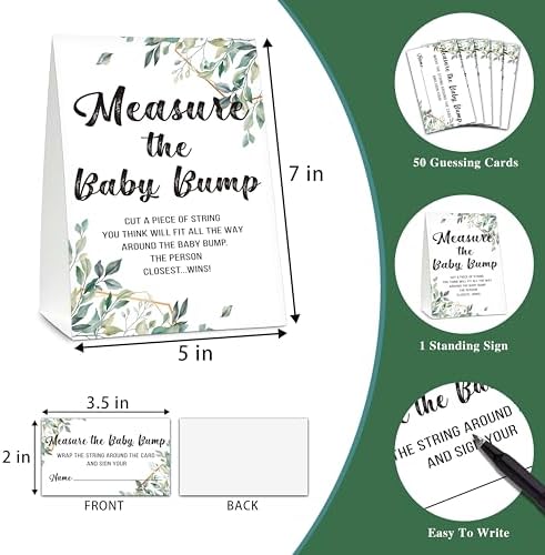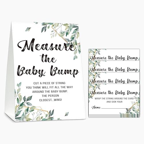 Baby Shower Game Set, Measure the Baby Bump(1 Standing Sign + 50 Find Cards), Neutral Greenery How Big is Mommy's Belly Party Game, Eucalyptus Gender Reveal Party Favor Decor(A01)